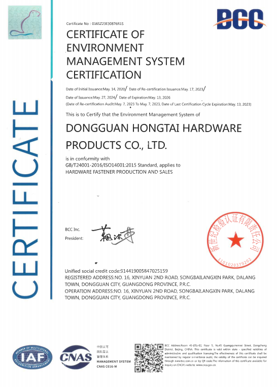東莞市紅泰五金制品有限公司,公司占地六千多平方米,擁有五十多組螺絲機(jī)及六十臺(tái)自動(dòng)車床設(shè)備。是一家專業(yè)設(shè)計(jì)、生產(chǎn)ISO、DIN、GB、JIS、ANSI、BS及客戶指定特殊要求的高精密五金緊固件的制造企業(yè)。